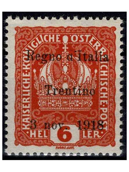 1918 TERRE REDENTE TRENTINO ALTO ADIGE 6 H ARANCIO SASSONE N 3 MNH MF132128