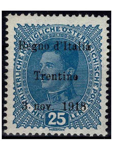 1918 TERRE REDENTE TRENTINO ALTO ADIGE 25 H AZZURRO SASSONE N 8 MNH MF132133