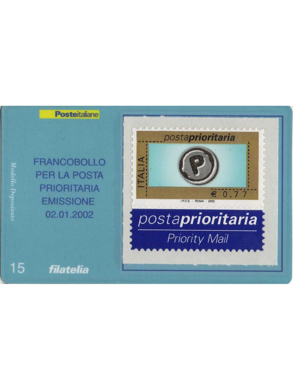 2002 TESSERA FILATELICA UNIF. n. 75 - ORDINARIA POSTA PRIORITARIA 0,77 EURO MF62015