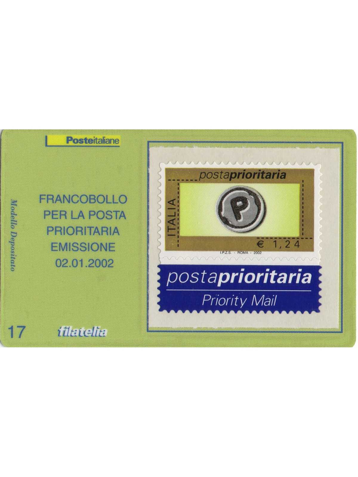 2002 TESSERA FILATELICA UNIF. n. 77 - ORDINARIA POSTA PRIORITARIA 1,24 EURO MF62017