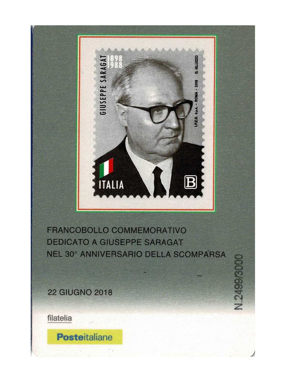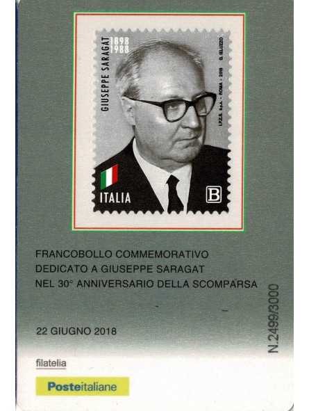 2018 TESSERA FILATELICA UNIF. n. 1335 GIUSEPPE SARAGAT MF132726