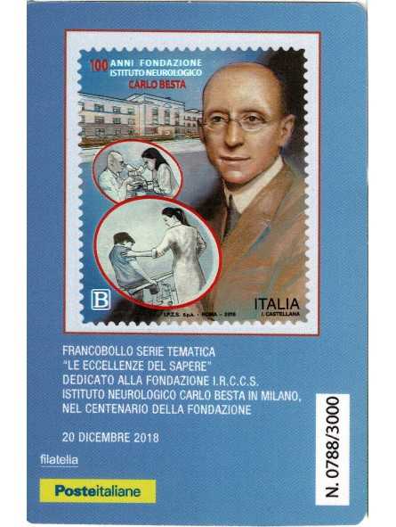 2018 TESSERA FILATELICA UNIF. n. 1370 ISTITUTO CARLO BESTA MILANO MF132752