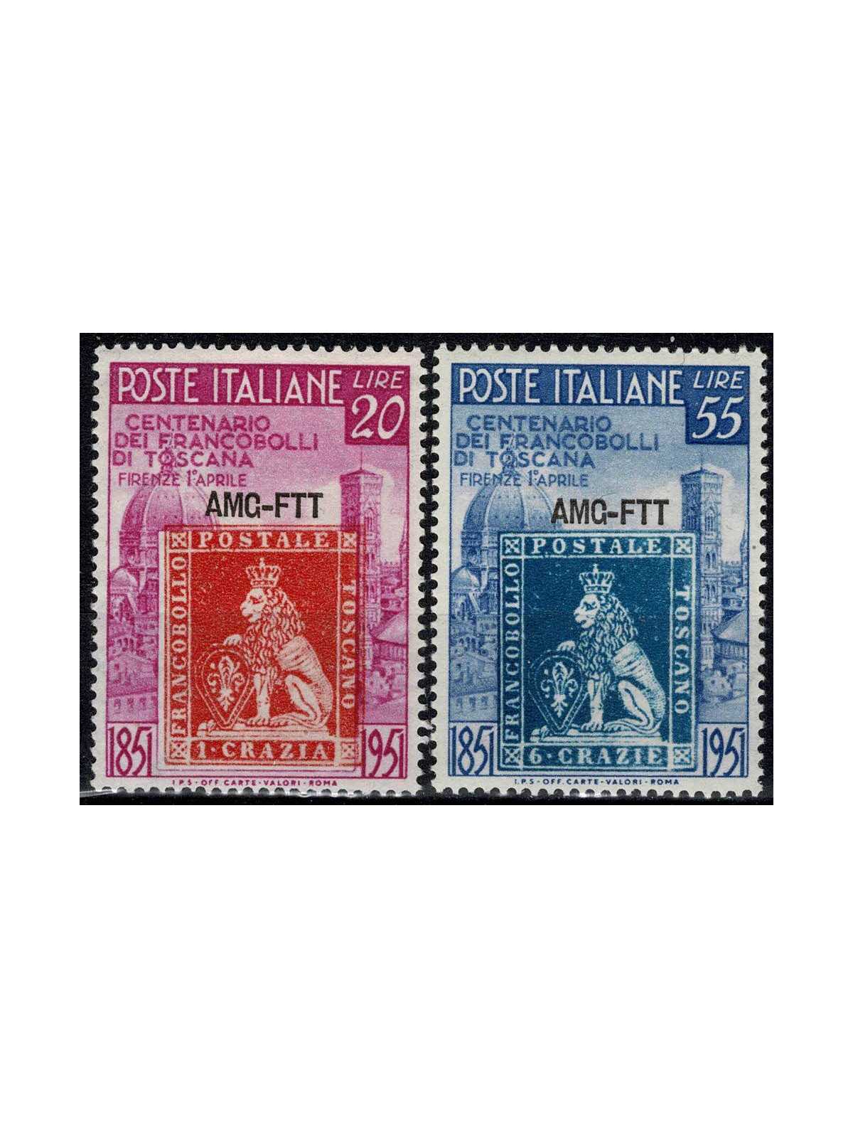 1951 TRIESTE A AMG-FTT CENT PRIMI FRANCOBOLLI DI TOSCANA 2 V. MNH MF23242