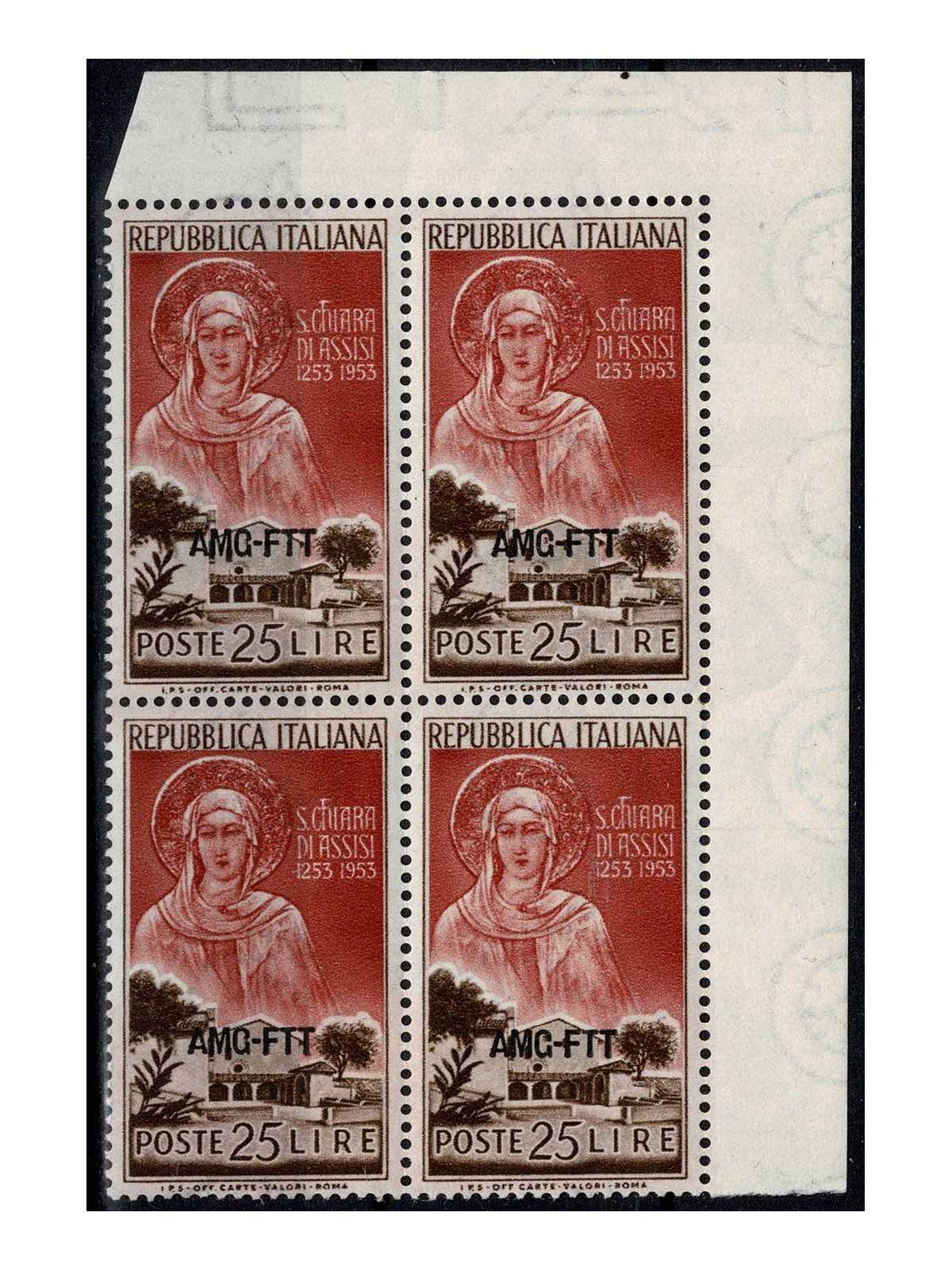 1953 TRIESTE A AMG-FTT 7° CENT. SANTA CHIARA D'ASSISI 1 V. QUARTINA MNH MF96606