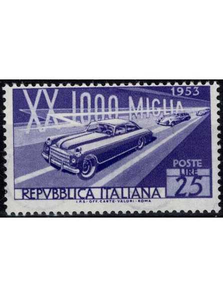 20° CORSA AUTOMOBILISTICA MILLE MIGLIA FRANCOBOLLO D'ITALIA N. 707 SOPRASTAMPATO