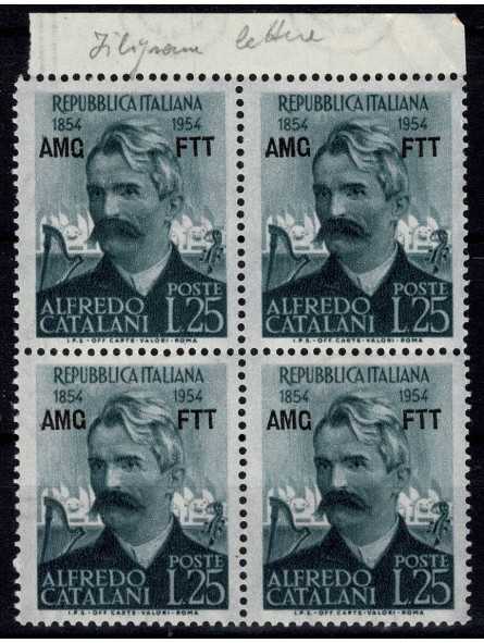 1954 TRIESTE A AMG-FTT CENTENARIO ALFREDO CATALANI 1 V. QUARTINA MNH MF96636