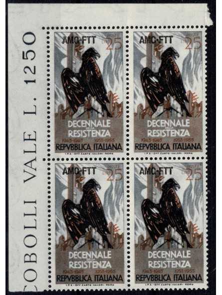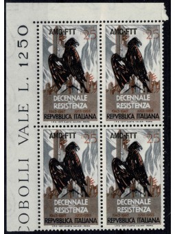 1954 TRIESTE A AMG-FTT DECENNALE DELLA RESISTENZA 1 V. QUARTINA MNH MF96635
