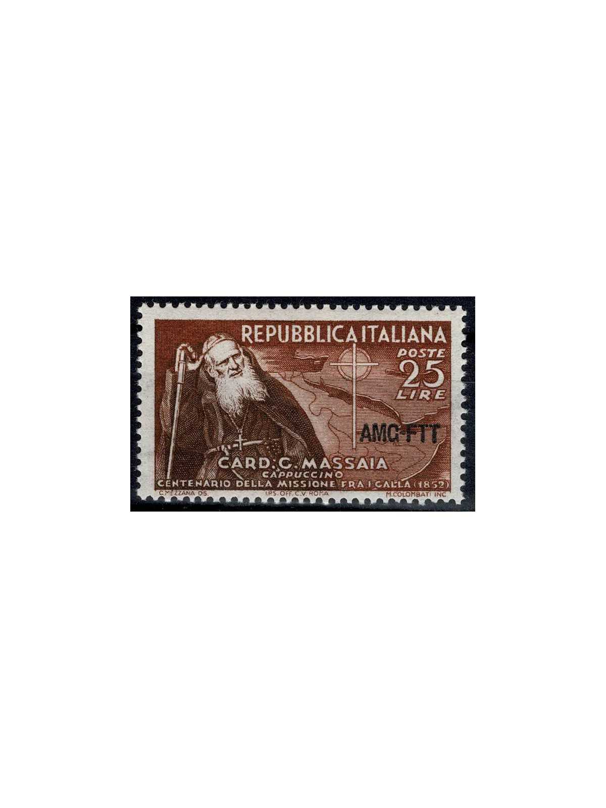 CENT PRIMA MISSIONE CARDINALE MASSAIA FRANCOBOLLO D'ITALIA N. 702 SOPRASTAMPATO