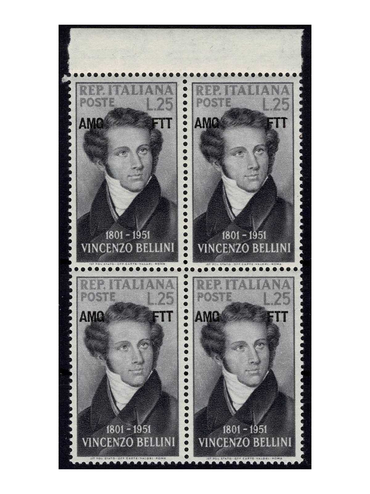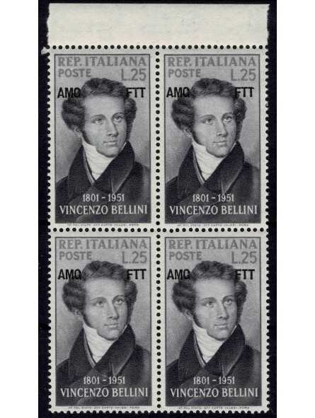 1952 TRIESTE A AMG-FTT 150° ANN. VINCENZO BELLINI 1 V. QUARTINA MNH MF126333