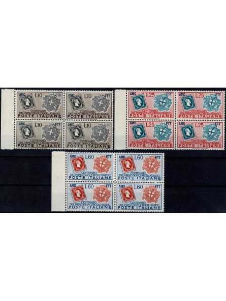 1951 TRIESTE A AMG-FTT CENT FRANCOBOLLI DI SARDEGNA 3 V IN QUARTINA MNH MF126322