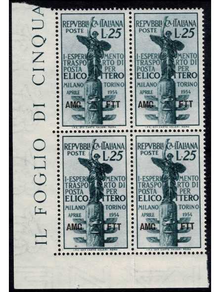 1954 TRIESTE A AMG-FTT TRASPORTO POSTA CON ELICOTTERO 1 V. QUARTINA MNH MF126339
