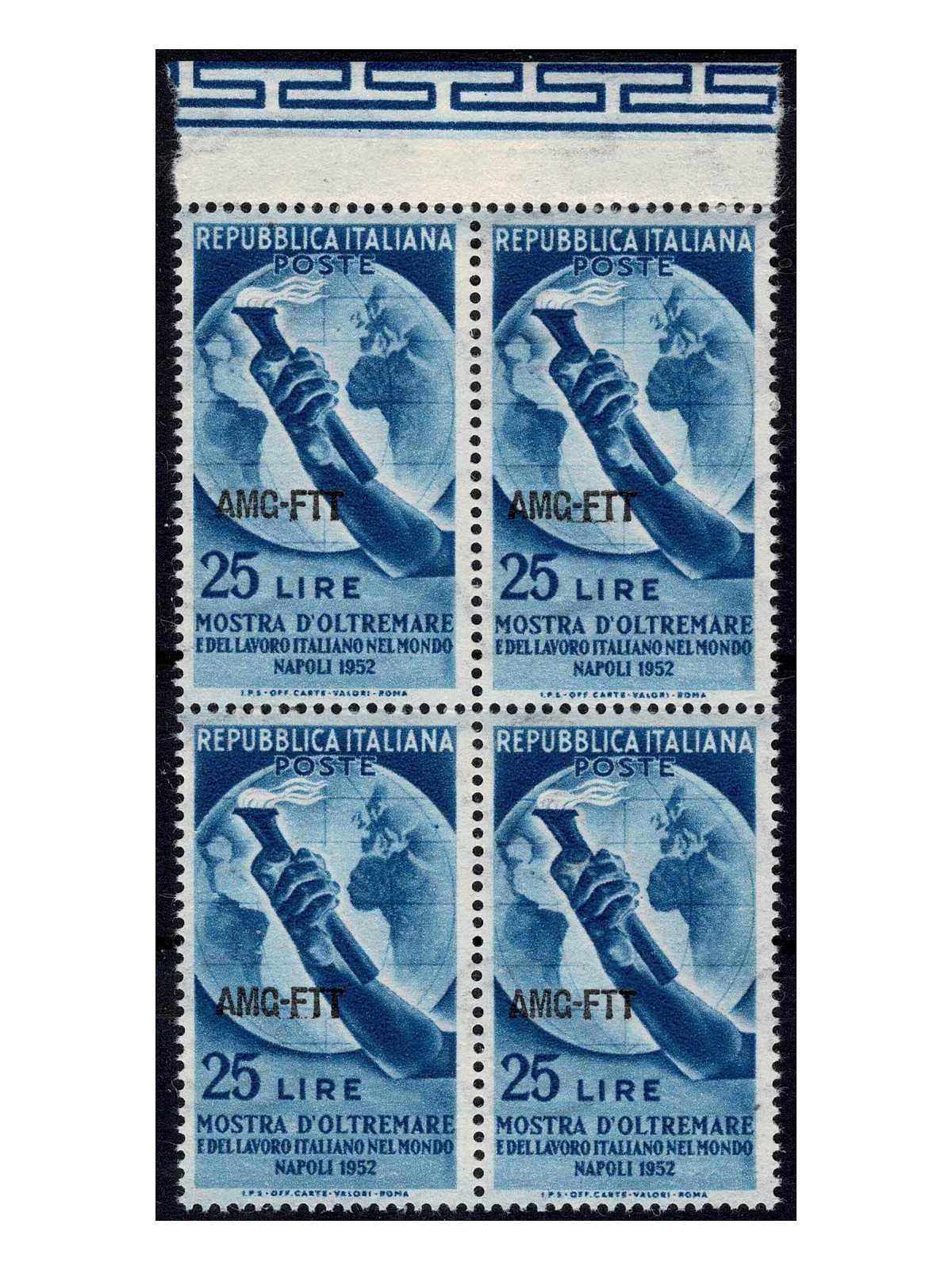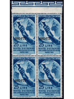 1952 TRIESTE A AMG-FTT MOSTRA OLTREMARE NAPOLI 25 LIRE 1 V QUARTINA MNH MF126351