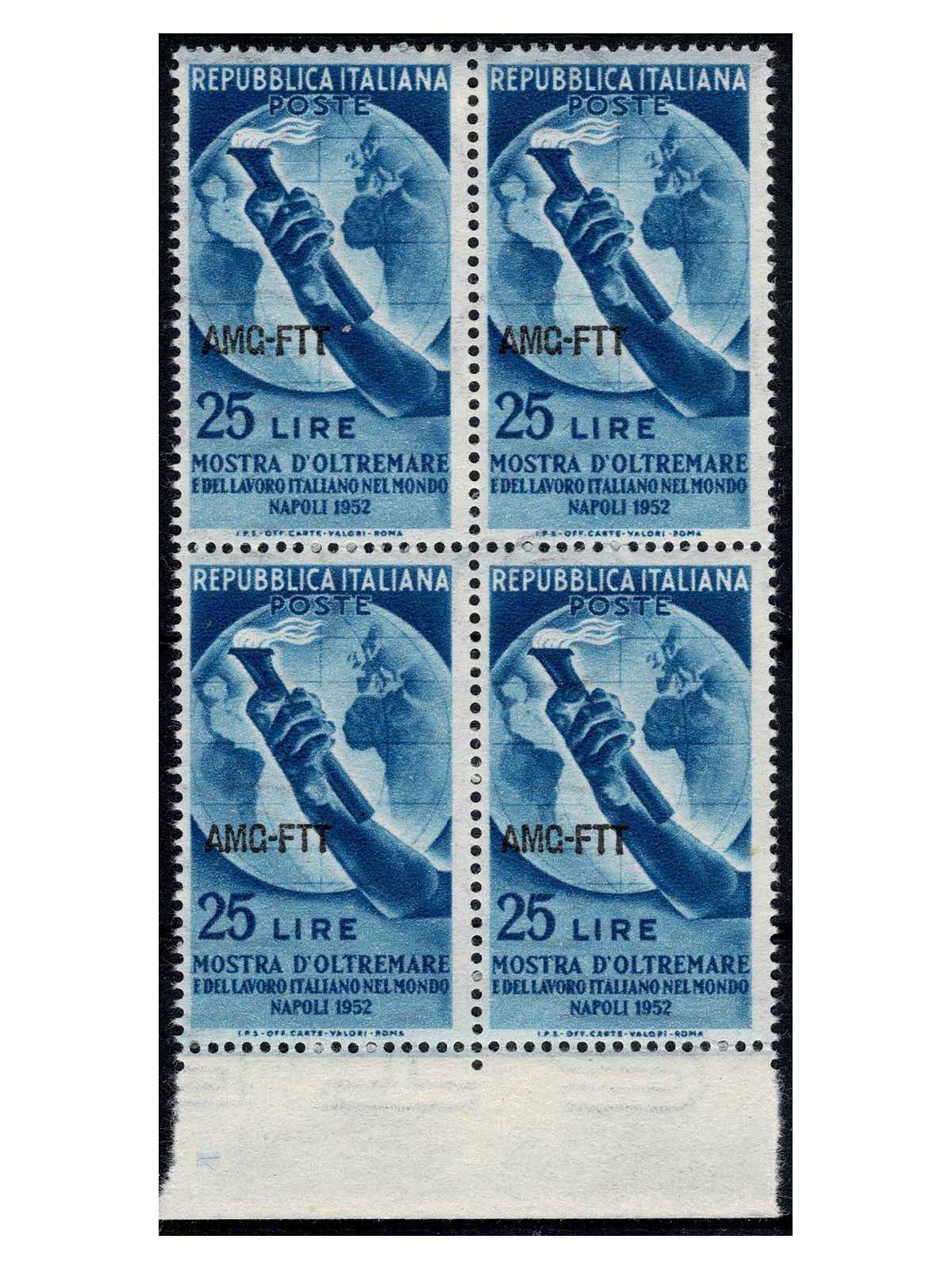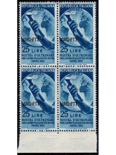 1952 TRIESTE A AMG-FTT MOSTRA OLTREMARE NAPOLI 25 LIRE 1 V QUARTINA MNH MF132070