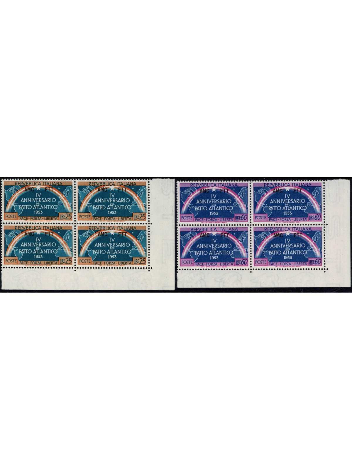 1953 TRIESTE A AMG-FTT 4° ANNIV. DEL PATTO ATLANTICO 2 V. QUARTINA MNH MF126363