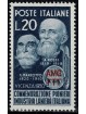 IN ONORE AI PIONIERI DELL'INDUSTRIA LANIERA ITALIANA FRANCOBOLLO D'ITALIA N. 628 SOPRASTAMPATO IN ROSSO
