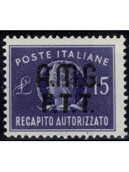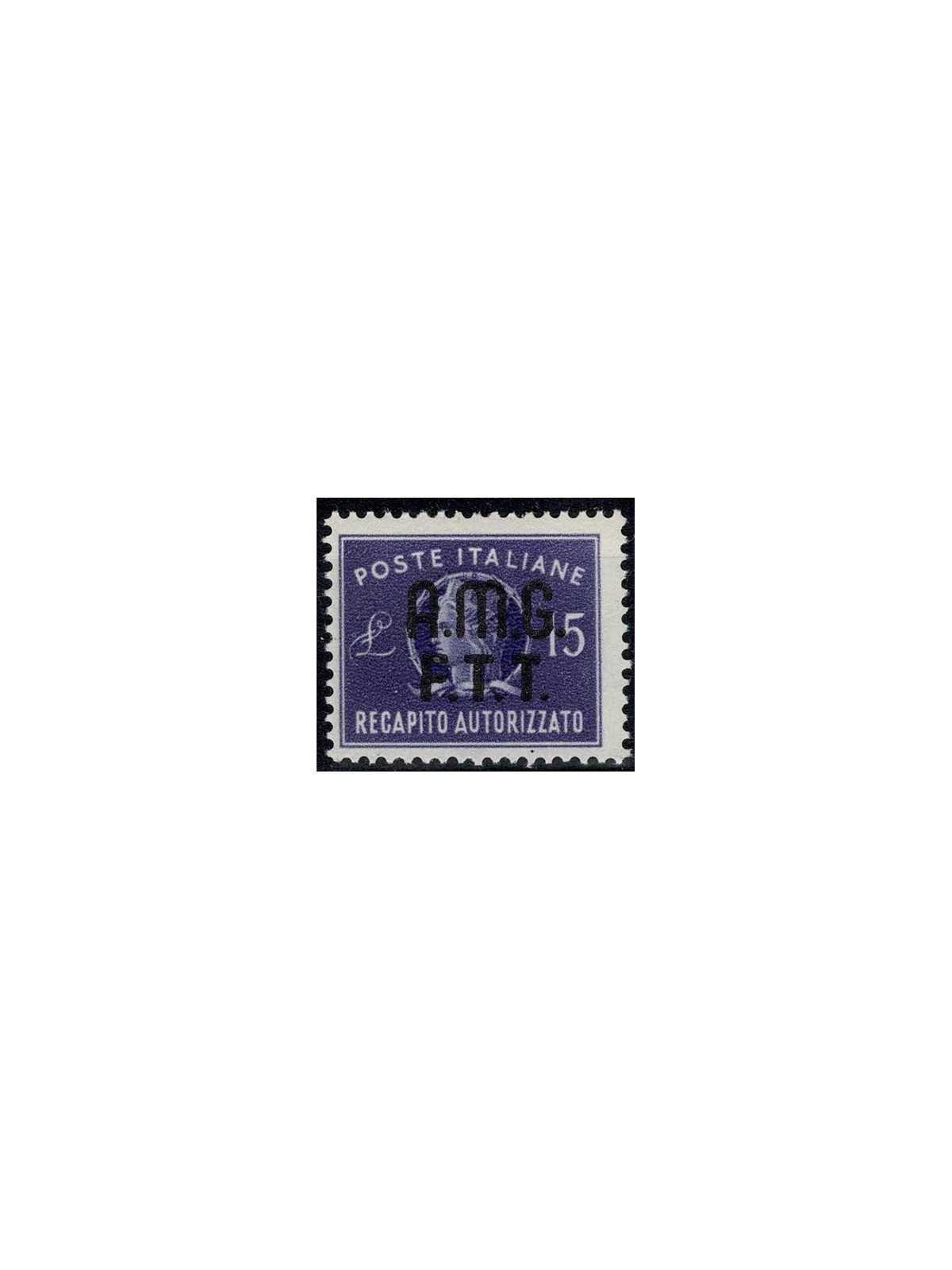 1949 TRIESTE A AMG-FTT RECAPITO AUTORIZZATO L. 15 SOPRAS 2 RIGHE 1 V MNH MF91645