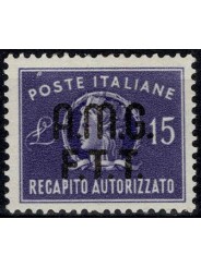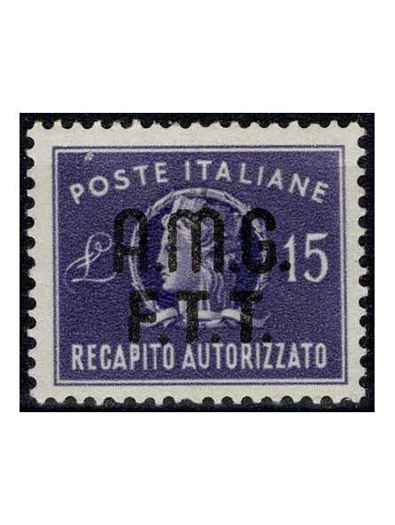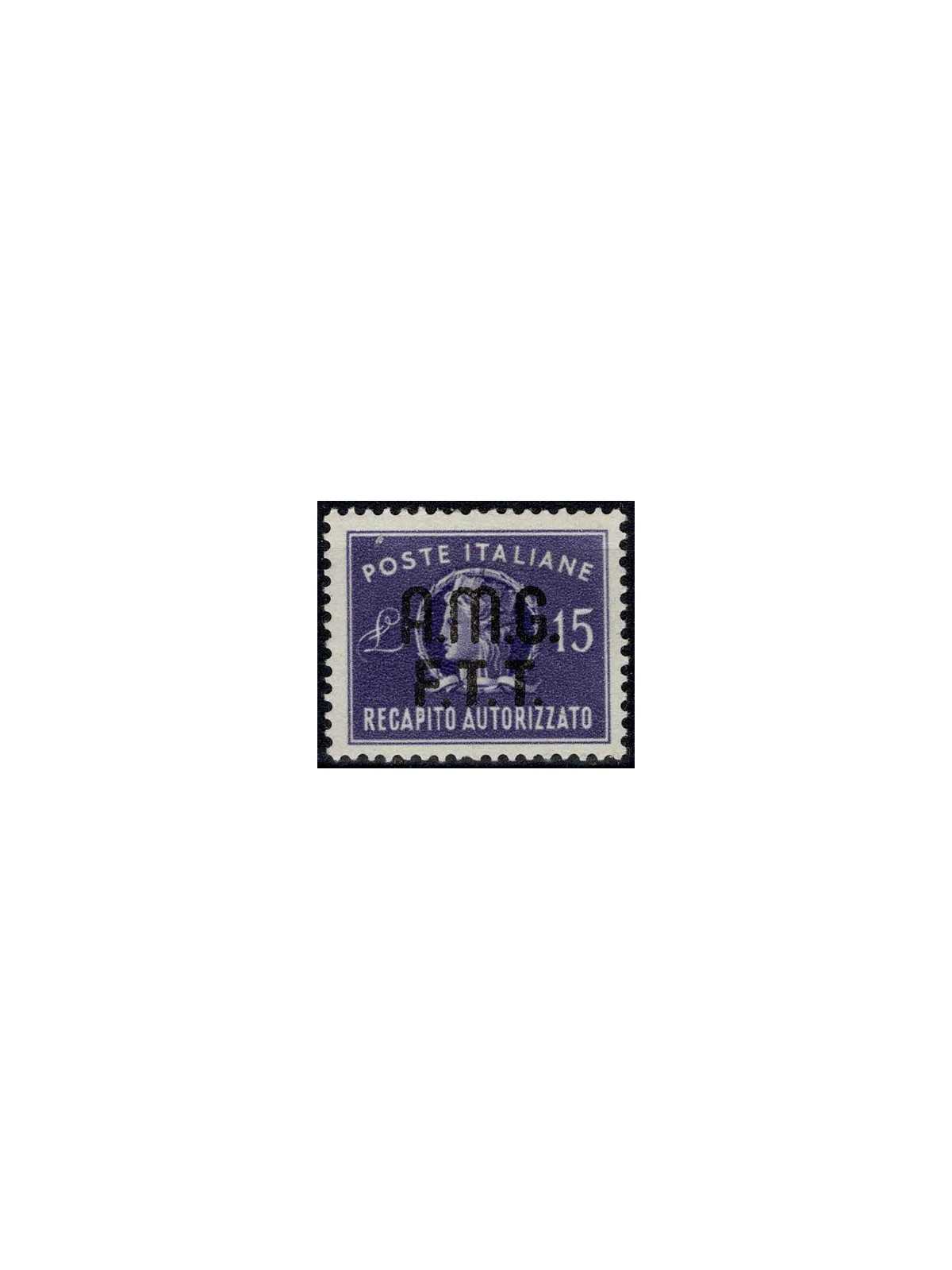 1949 TRIESTE A AMG-FTT RECAPITO AUTORIZZATO L. 15 SOPRAS 2 RIGHE 1 V MNH MF132075