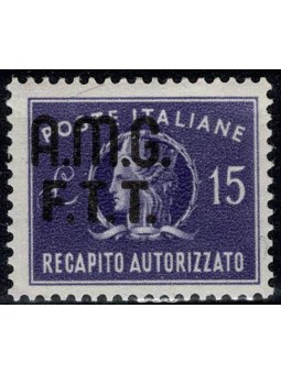 1949 TRIESTE A AMG-FTT RECAPITO AUTORIZZATO L. 15 SOPRAS 2 RIGHE 1 V MNH MF132076
