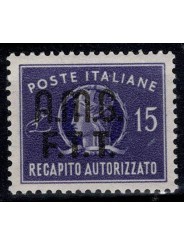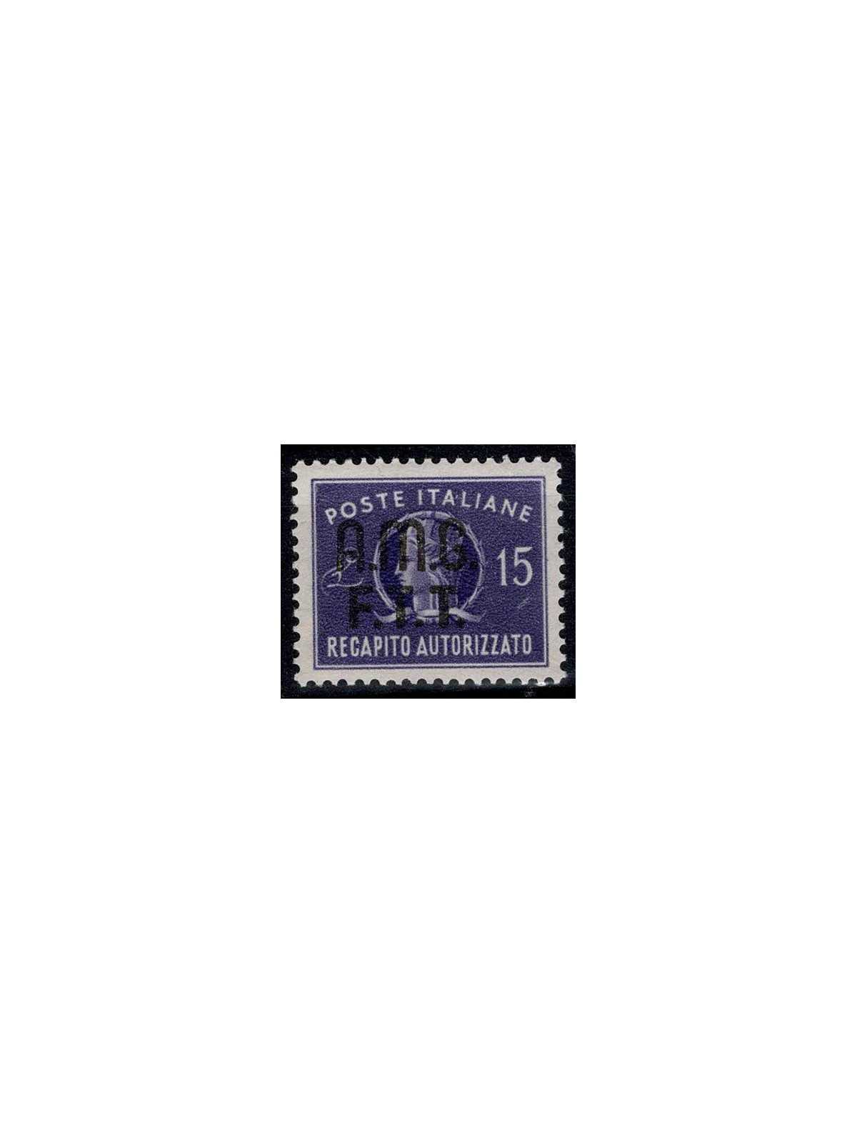 1949 TRIESTE A AMG-FTT RECAPITO AUTORIZZATO L. 15 SOPRAS 2 RIGHE 1 V MNH MF132078