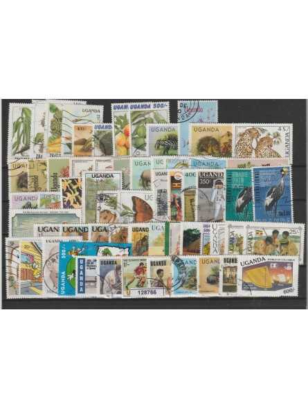 UGANDA LOTTO DI 60 FRANCOBOLLI USATI TUTTI DIFFERENTI COME DA FOTO