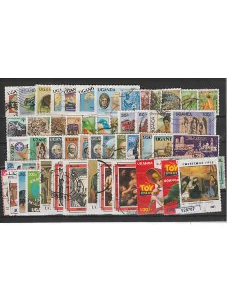 UGANDA LOTTO DI 60 FRANCOBOLLI USATI TUTTI DIFFERENTI COME DA FOTO