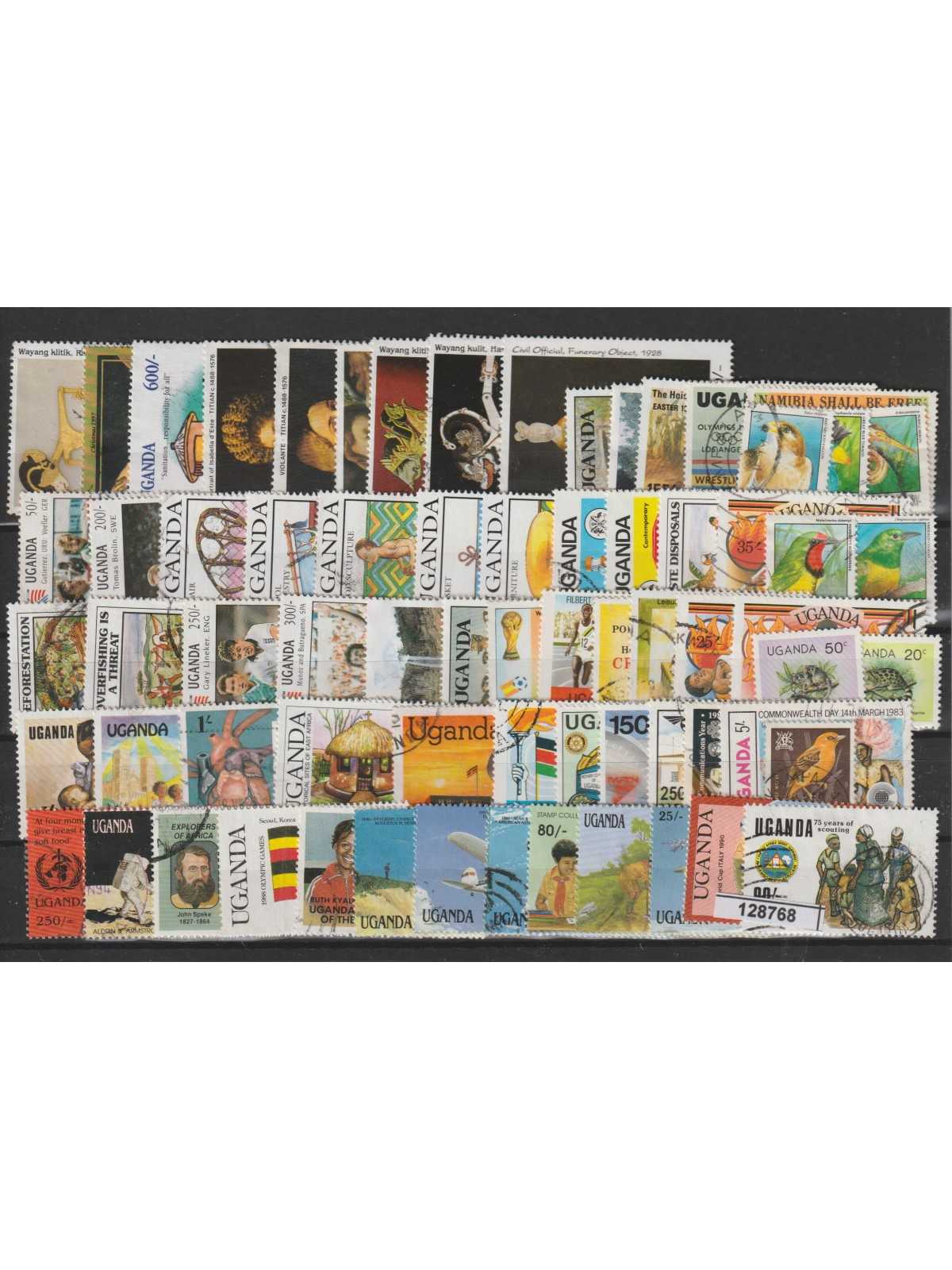 UGANDA LOTTO DI 60 FRANCOBOLLI USATI TUTTI DIFFERENTI COME DA FOTO