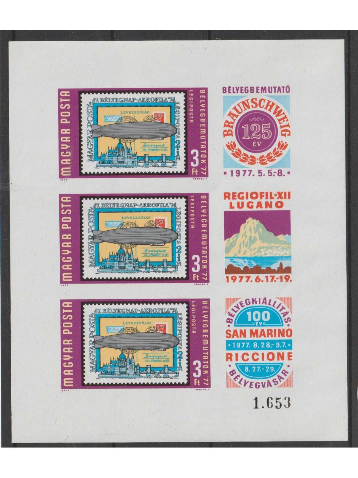 1977 UNGHERIA EXPO FILATELICA LUGANO SAN MARINO 1 BF N.D. MNH FOTO MF127689
