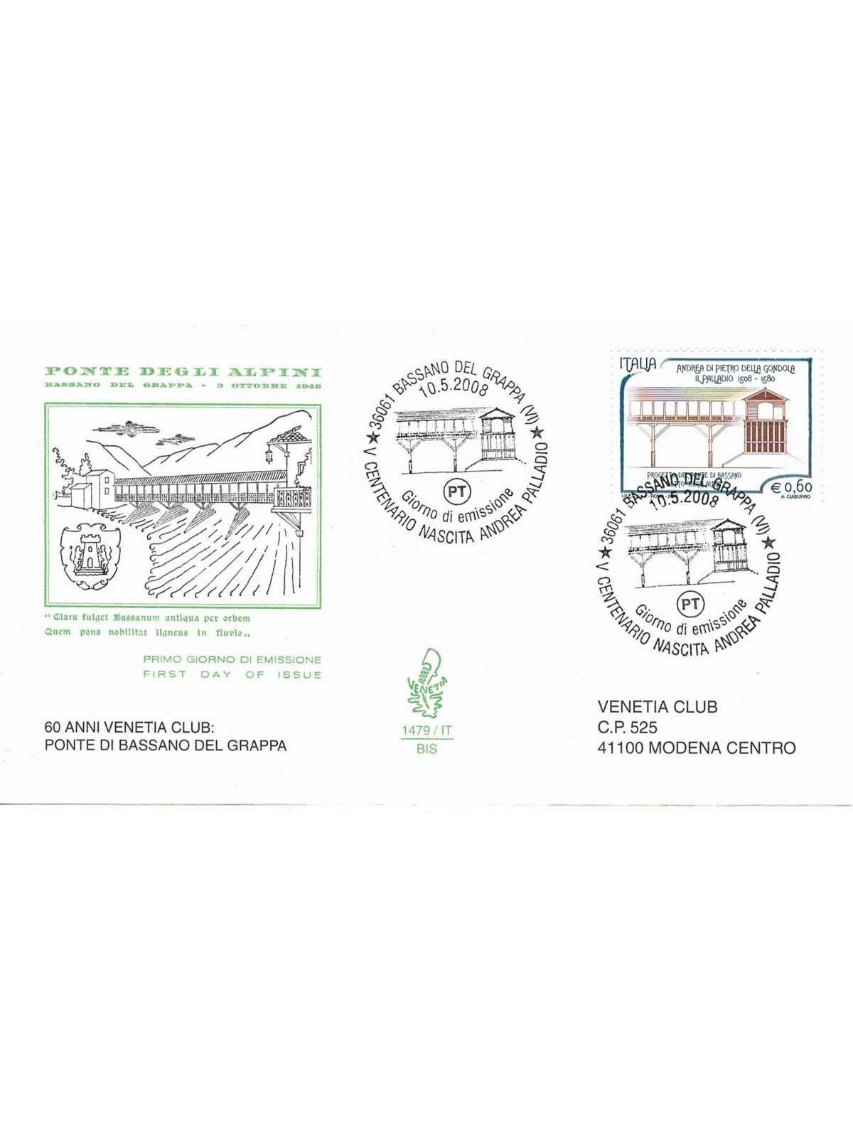 2008 FDC VENETIA 1478/IT-BIS ITALIA 60 VENETIA CLUB VIAGGIATA MF68402