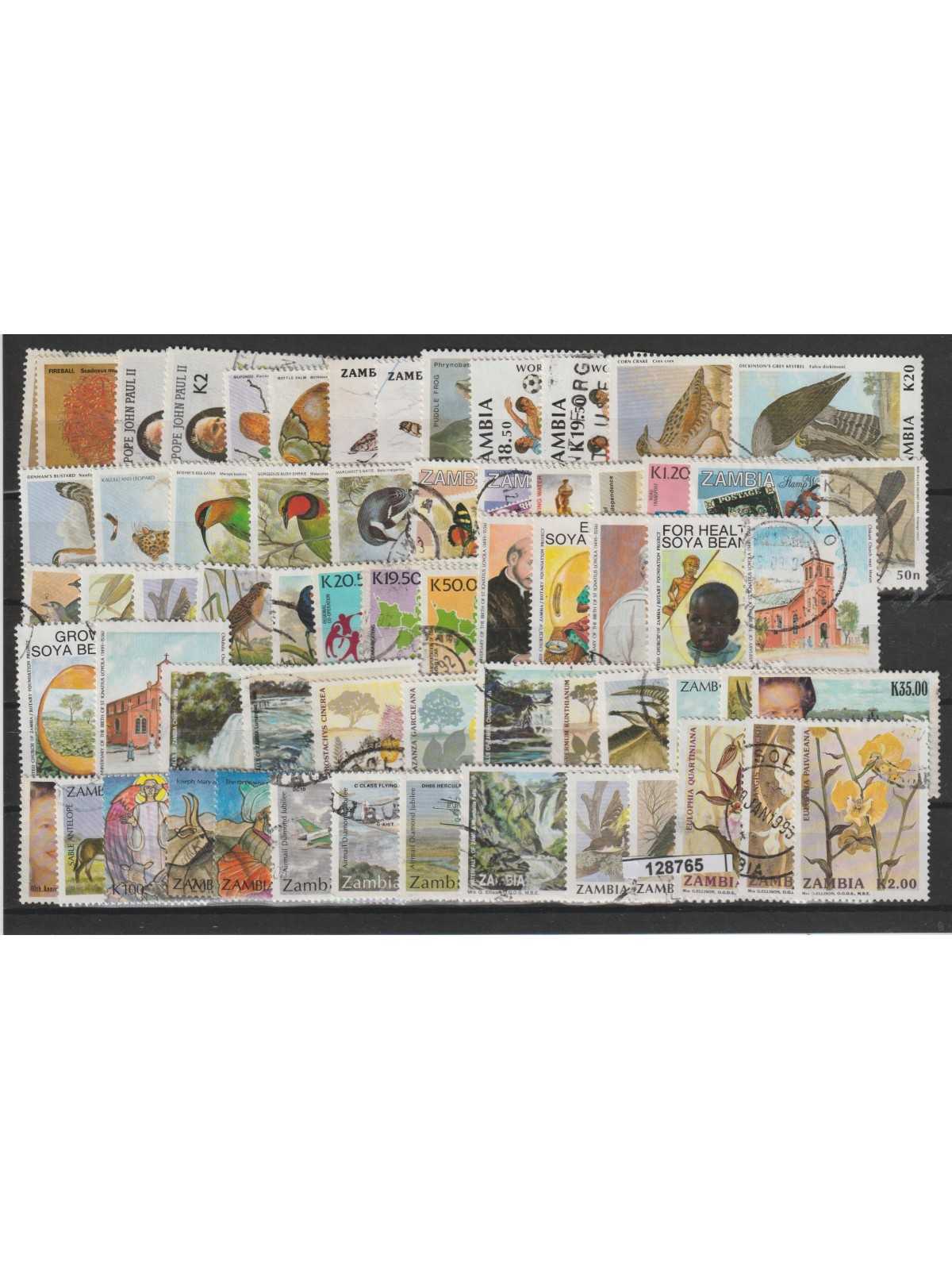 ZAMBIA LOTTO DI 60 FRANCOBOLLI USATI TUTTI DIFFERENTI COME DA FOTO